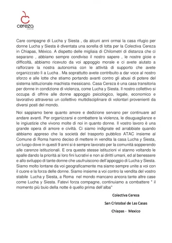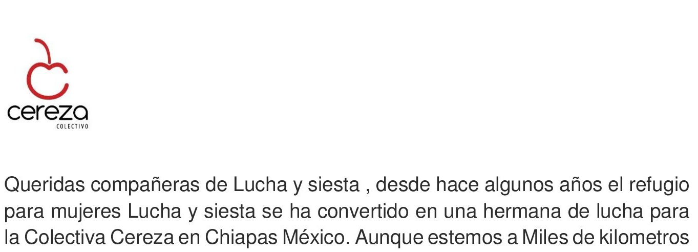 Di sorellanza e solidarietà non abbiamo mai sete, nonostante le distanze e le fatiche che condividiamo nel tenere aperti spazi di donne in tutto il mondo, non dimentichiamo mai di appartenere tutte alla grande schiera delle donne che hanno scelto di lottare, di essere parte della mare femminista che sta inondando il mondo per migliorarlo. Questa è la lettera delle compagne della Colectiva Cereza Chiapas che, fra le tante attività, costruiscono percorsi di autodeterminazione e libertà insieme con le donne detenute nelle carceri della regione messicana del Chiapas, Le ringraziamo con tutto il cuore e condividiamo con voi la forza delle loro parole.